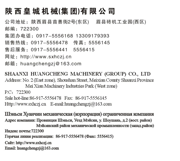 地址:陜西省眉縣首善街2號(東區(qū)) 眉縣磚機工業(yè)園(西區(qū)) 郵編: 722300 銷售熱線:0917-5556478 13309179393 售后服務:0917--5556441
