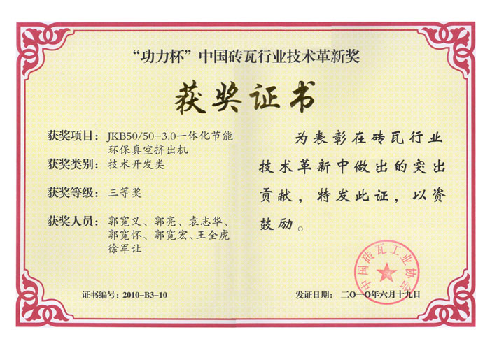功力杯 中國(guó)磚瓦行業(yè)技術(shù)革新獎(jiǎng).