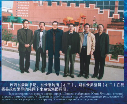 陜西省委副書記、省長袁純清(右三),副省長吳登昌(右二)在縣委政府領(lǐng)導(dǎo)的陪同下來皇城集團(tuán)調(diào)研