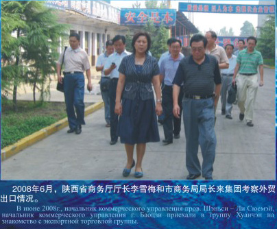 2008年6月,陜西省商務(wù)廳廳長李雪梅和市商務(wù)局局長來集團(tuán)考察外貿(mào)出口情況