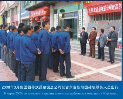 2008年3月集團(tuán)領(lǐng)導(dǎo)歡送皇城總公司赴吉爾吉斯坦國磚機(jī)服務(wù)人員出行