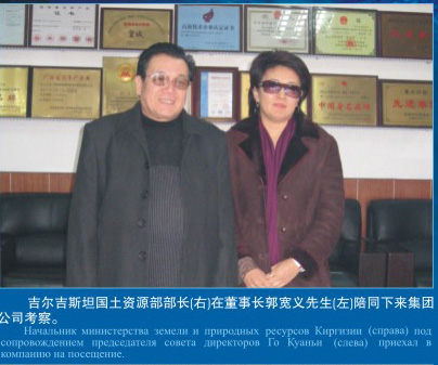 吉爾吉斯坦國土資源部部長(右)在董事長郭寬義先生陪同下來集團(tuán)公司考察