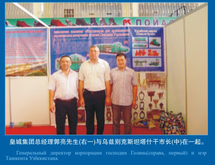 集團(tuán)總經(jīng)理郭亮先生與烏茲別克斯坦什干市長(中)在一起