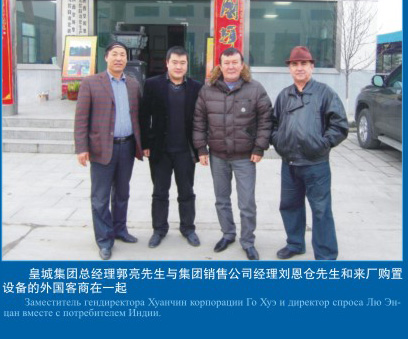 郭亮先生與集團(tuán)銷售公司劉恩倉先生和來廠購置設(shè)備的外國客商在一起