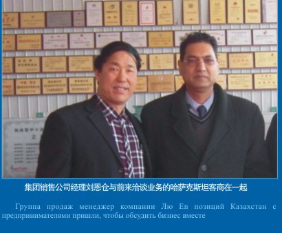 集團(tuán)銷售經(jīng)理與前來洽談業(yè)務(wù)的哈薩克斯坦客商在一起